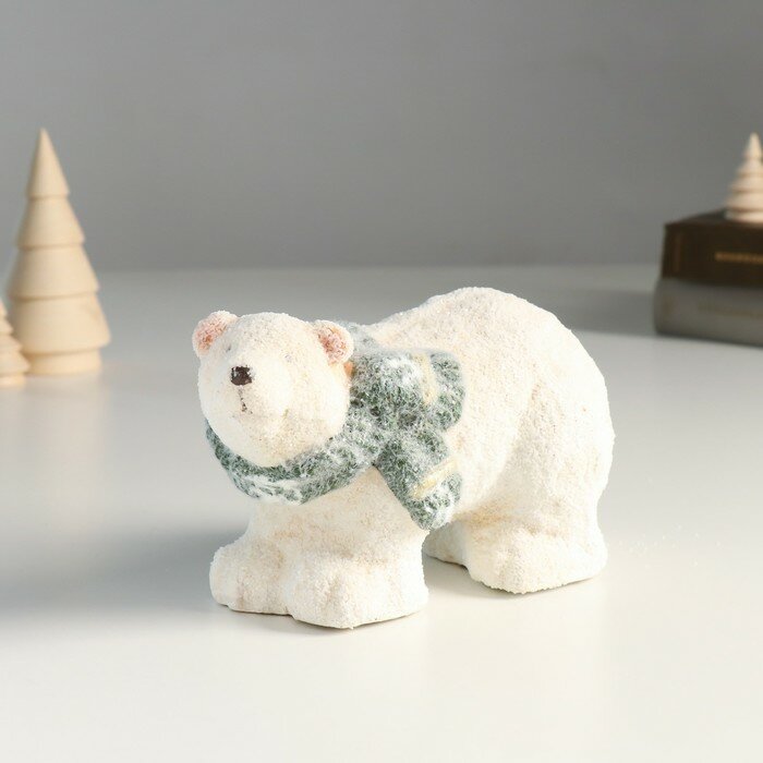 Купить Сувенир керамика "Белый медведь в зелёном шарфе" 16,5х7,5х10 см