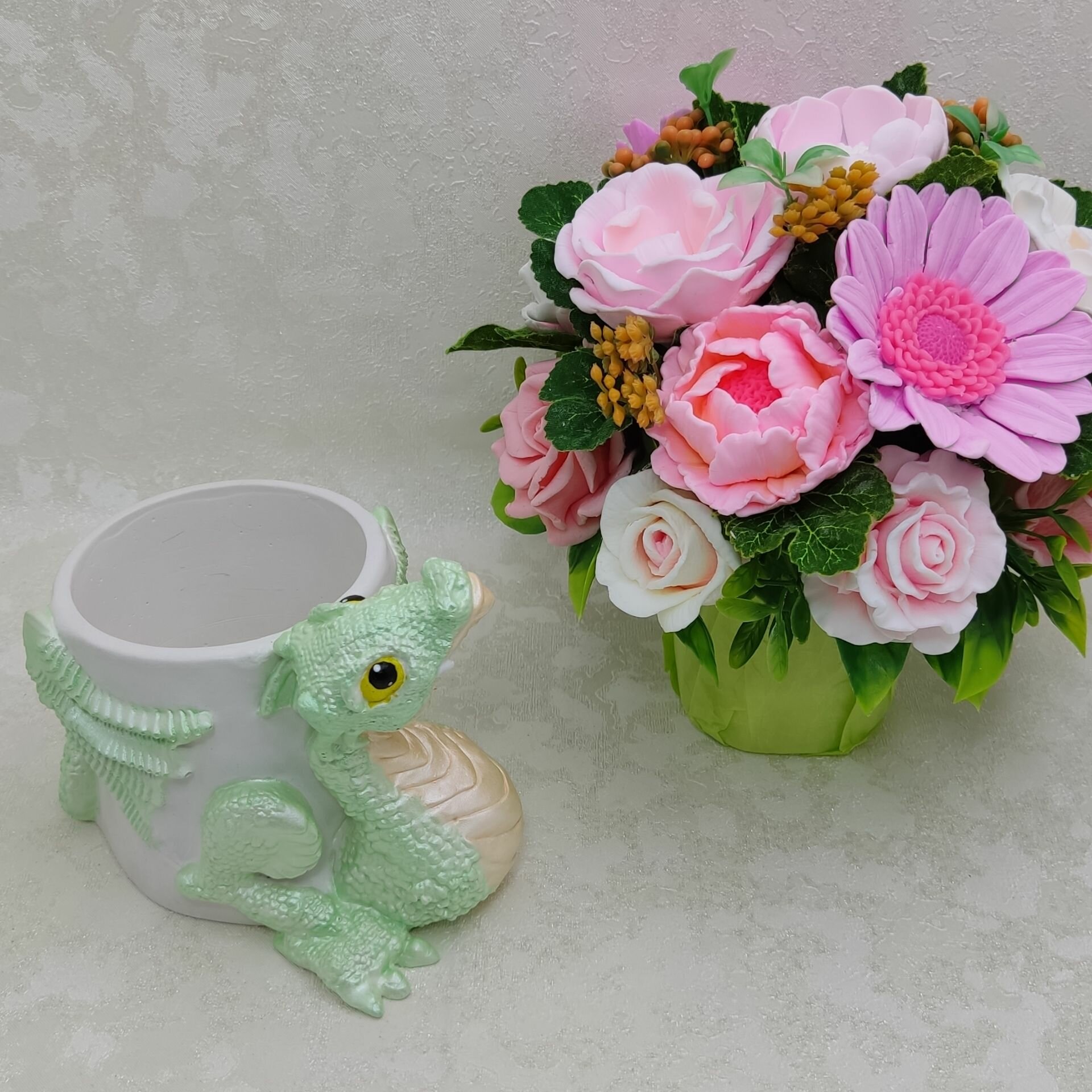 Купить Цветы из мыла в гипсовом кашпо "Дракон"