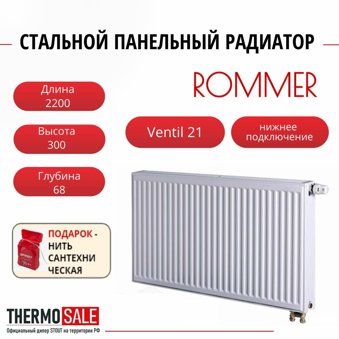 ROMMER 21/300/800 радиатор стальной панельный нижнее под. Ventil RRS-2020-213080 RG008TD0UTFC6P