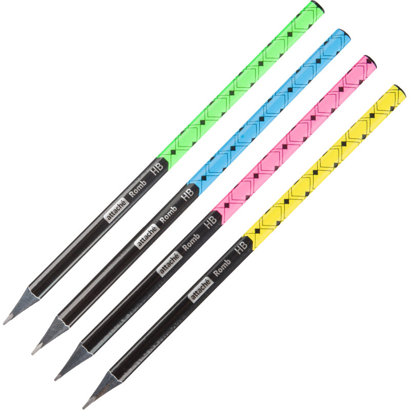 Карандаш чернографитный Attache Romb HB б/ласт трехгр черн. дерево, в асс, 15 штук интересное: