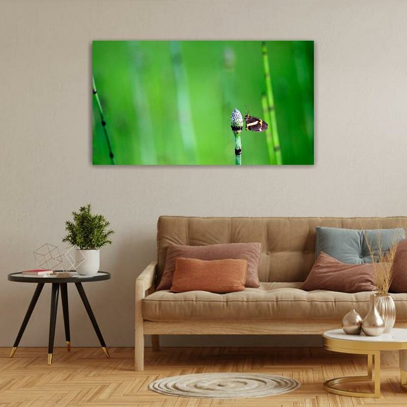 Картина на холсте 60x110 LinxOne "Бабочка, трава, фон" интерьерная для дома / на стену / на кухню / с подрамником интересное:
