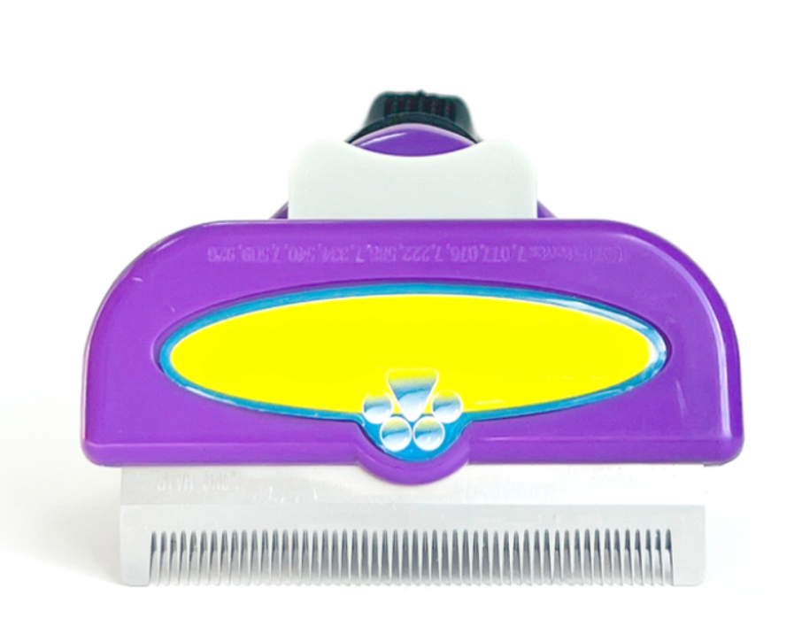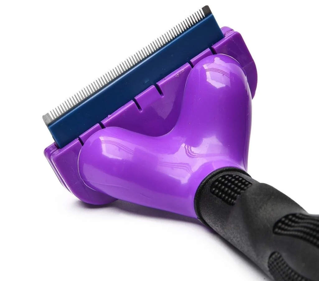 Купить Пуходерка для животных Щетка для вычесывания шерсти у Длинношерстных кошек и короткошёрстных собак с кнопкой для cамочистки Фиолетовая