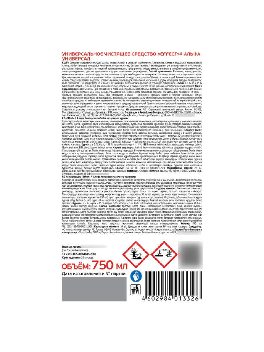 Effect Универсальное чистящее средство Альфа 106, 0.75 л