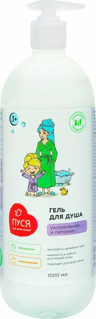 Гель для душа пуся Для всей семьи универсальный, 1л, Россия, 1000 мл интересное: