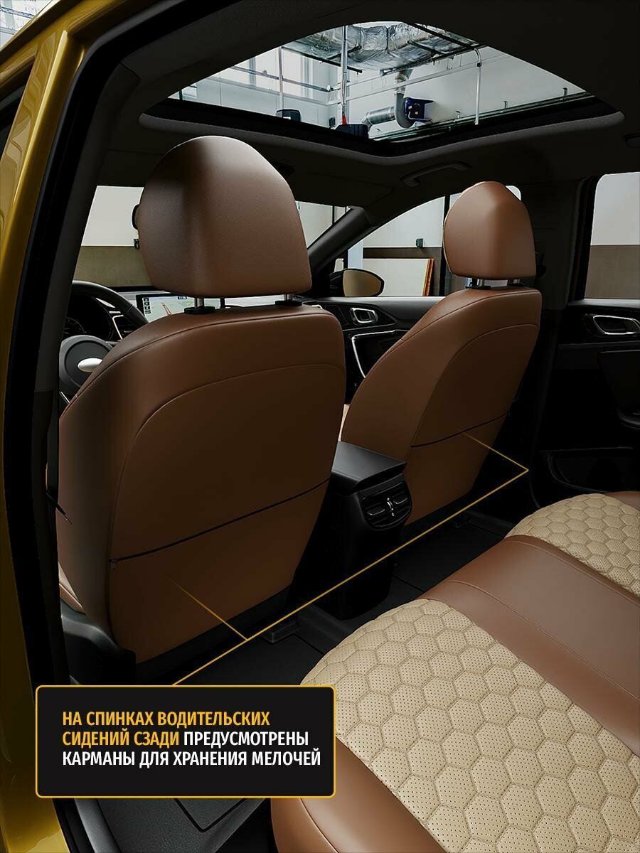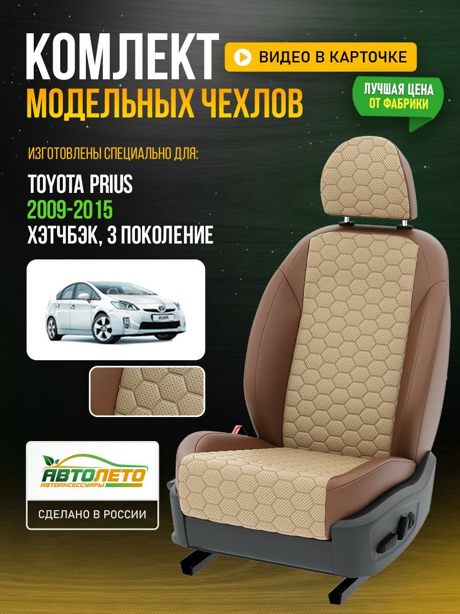 Чехлы для Toyota Prius 3 1997-2020 Бежевый Коричневый Экокожа соты Авто Лето LA224C121 интересное: