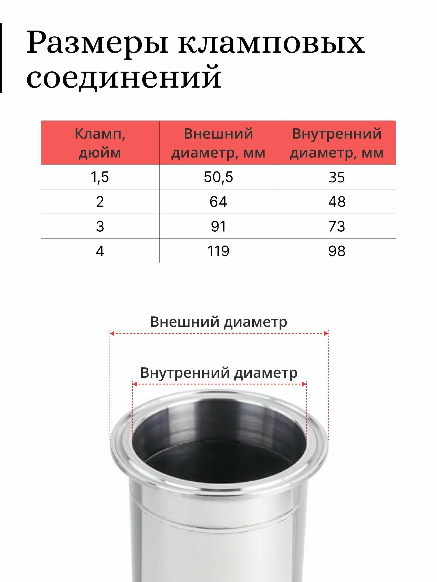 Царга Mendeleeff, под кламп 3 дюйма, высота 42 мм, без ниппеля под термометр интересное: