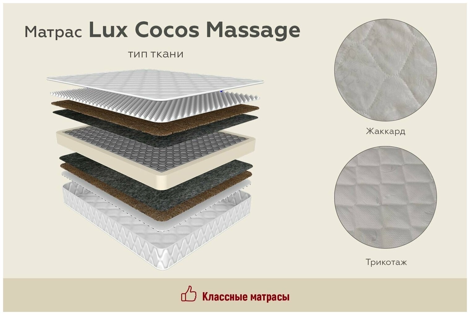 Матрас LUX COCOS MASSAGE высота 24 см для сна на диван кровать пружины 256 кокос пена AirFoam стеганный жаккард (180 / 190) интересное: