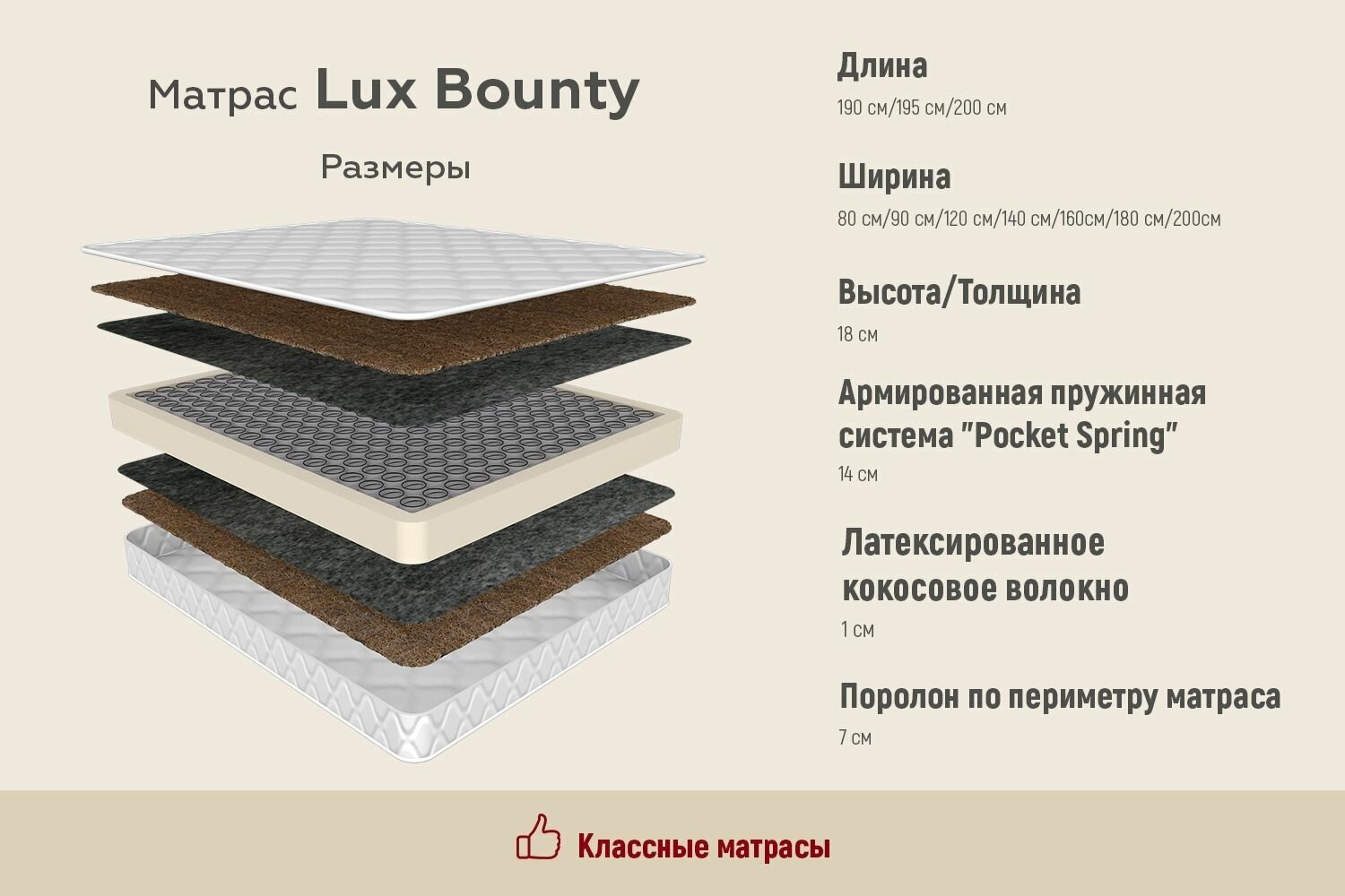 Матрас LUX COCOS BOUNTY высота 18 см для сна на диван кровать пружины 256 кокос стеганный жаккард (80 / 200) интересное: