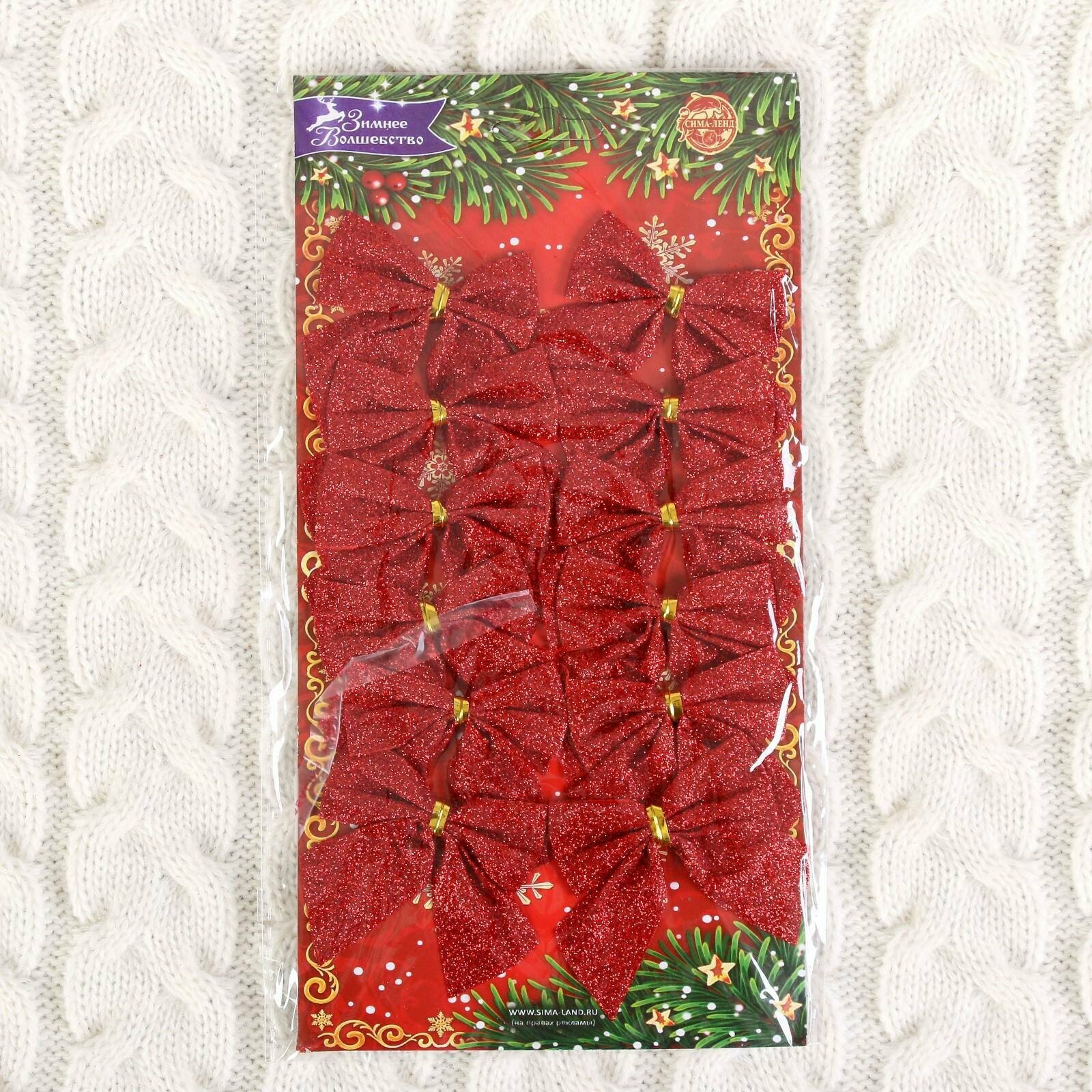 Купить Украшение ёлочное "Бантик - блеск" (набор 12 шт) 4,5х5,5 см, красный