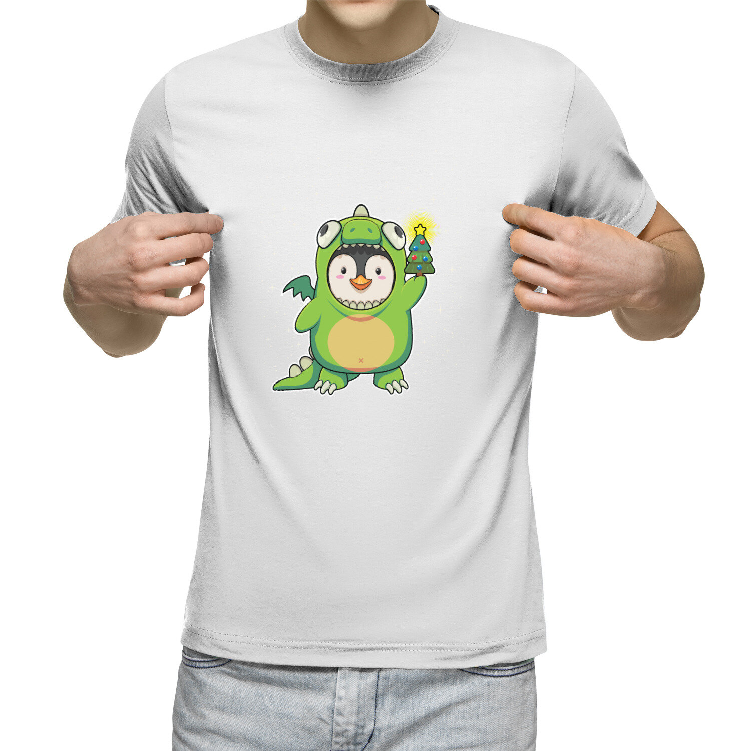Мужская футболка «Пингвин в костюме дракона символ 2024 года» (L, белый)