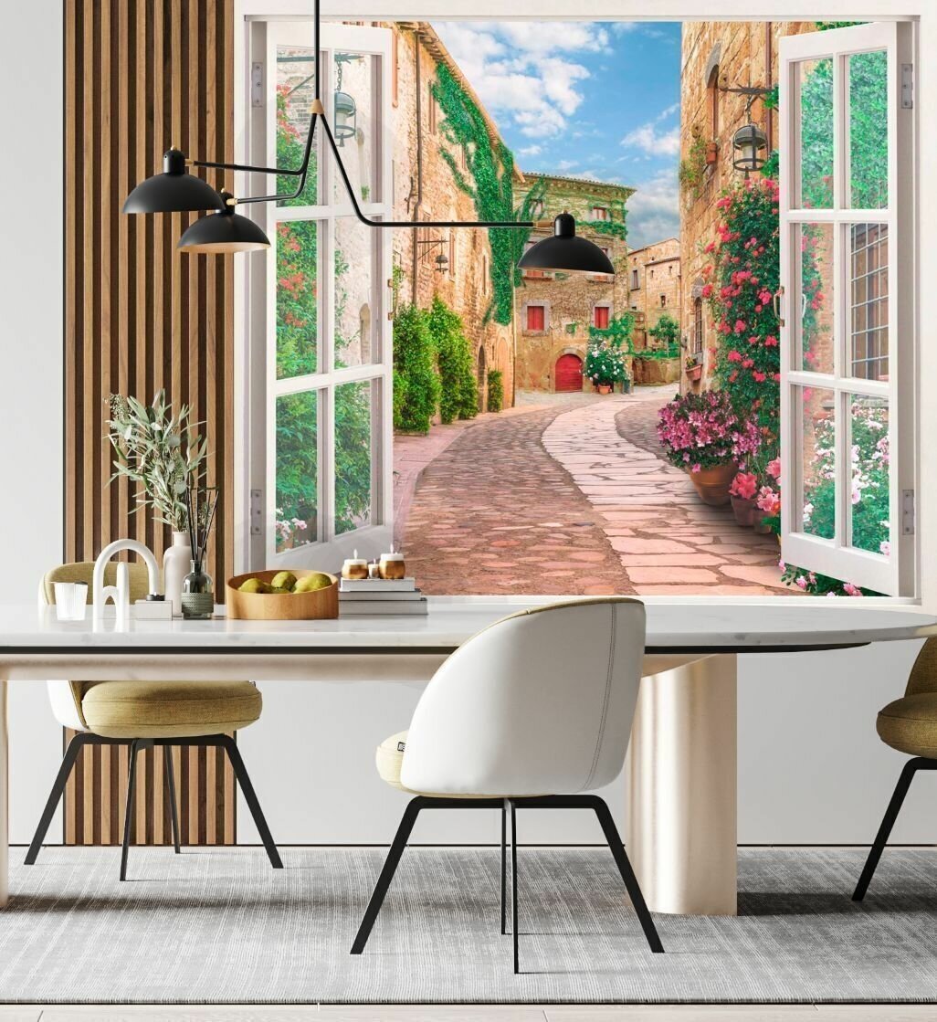 Купить Фотообои бесшовные " Окно улочка италии " 2х2,7м (ШхВ)