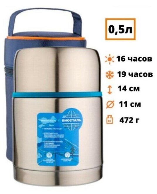 Термос Авто Вакуумный суповой, широкое горлышко с кнопкой, термочехол Биосталь/Biostal (0.5),NRP-500 интересное: