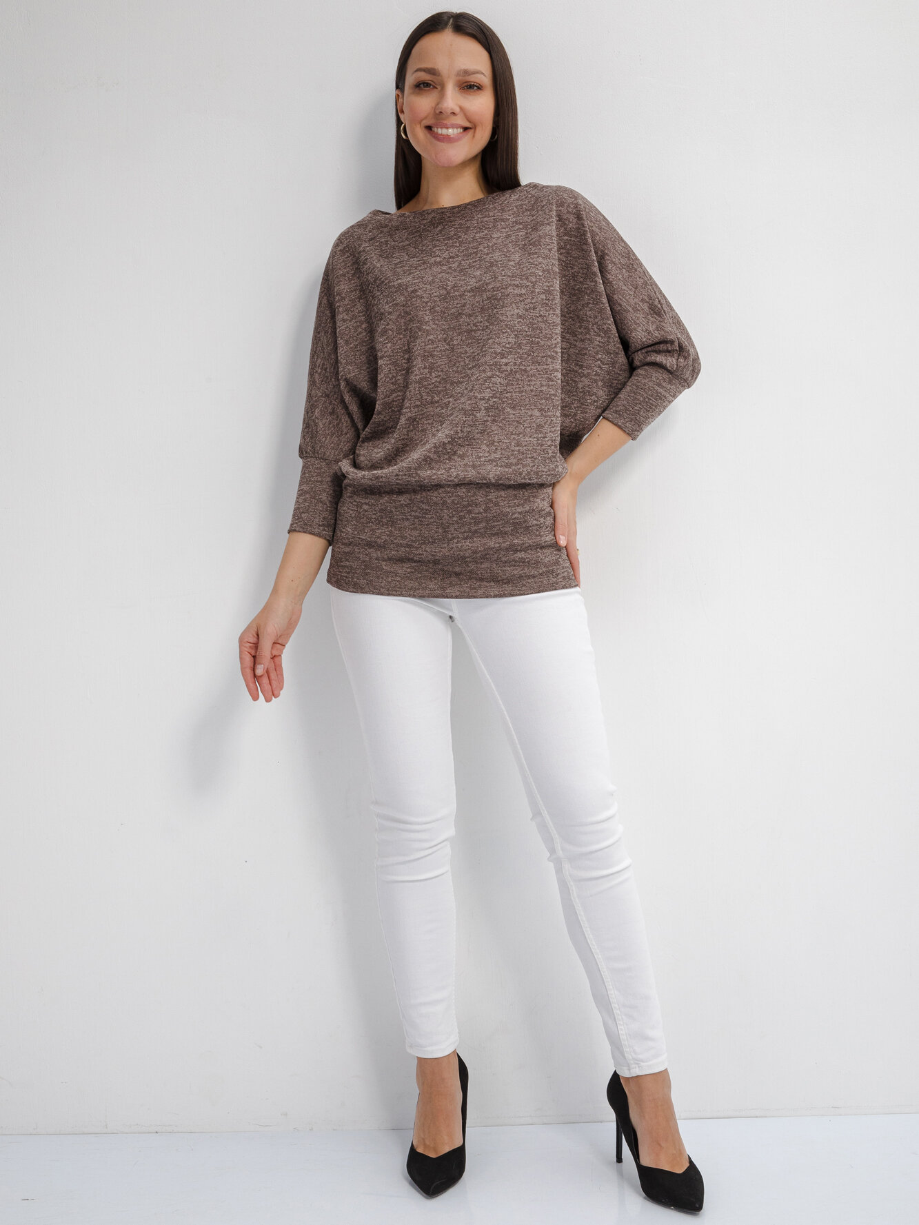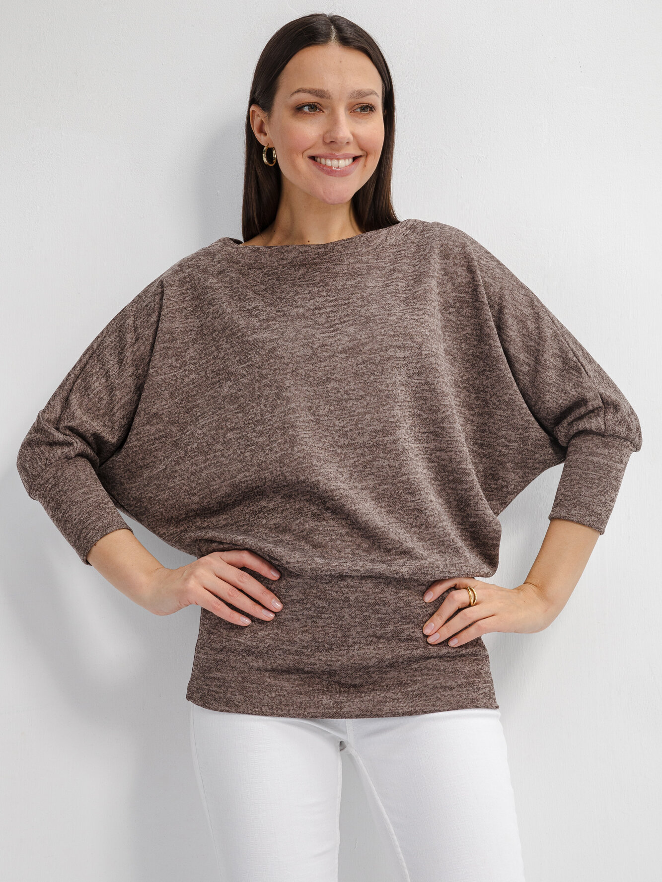 Джемпер летучая мышь, какао, 58