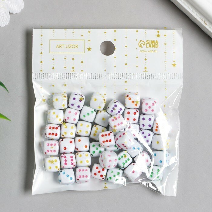 Бусины для творчества пластик "Белый игральный кубик" цветные точки набор 20гр 0,8х0,8х0,8см 78118 интересное: