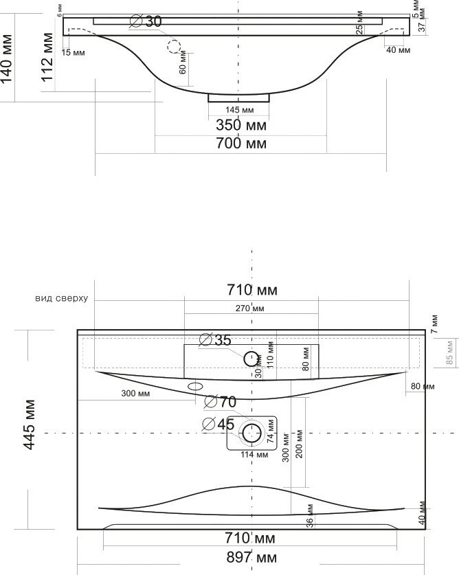 | Отверстие под перелив | есть |