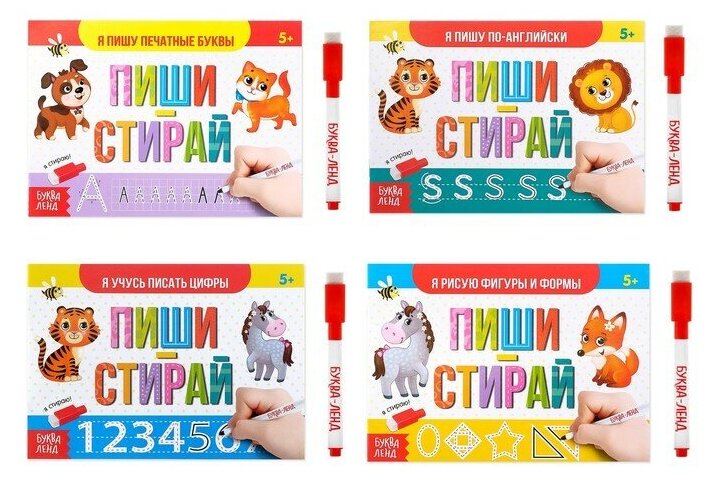 Купить Книги многоразовые с маркером №1, набор, 4 шт. по 12 стр.