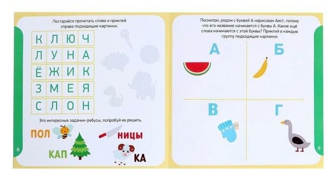 Книга с наклейками «Буквы и слова», 12 стр. интересное: