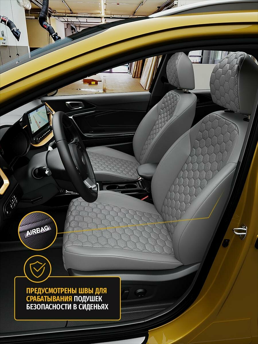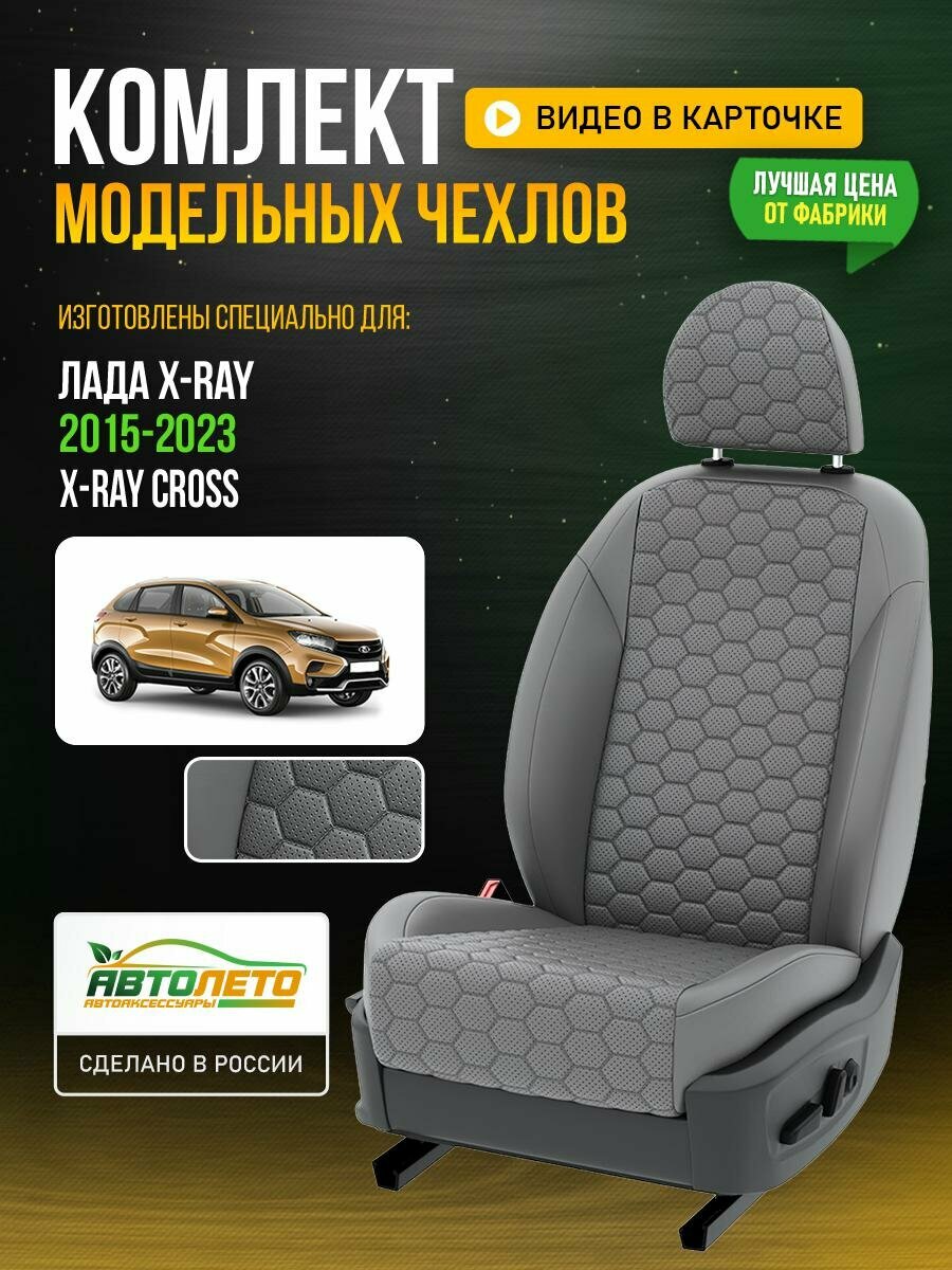 Чехлы для LADA (ВАЗ) X-ray Cross 2015-2023 Серый Серый Экокожа соты Авто Лето LA6C127 интересное:
