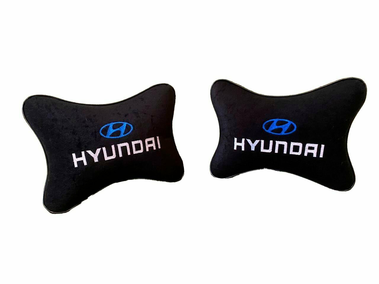 Подушки автомобильные под шею с вышитым синим логотипом и белой надписью Hyundai интересное: