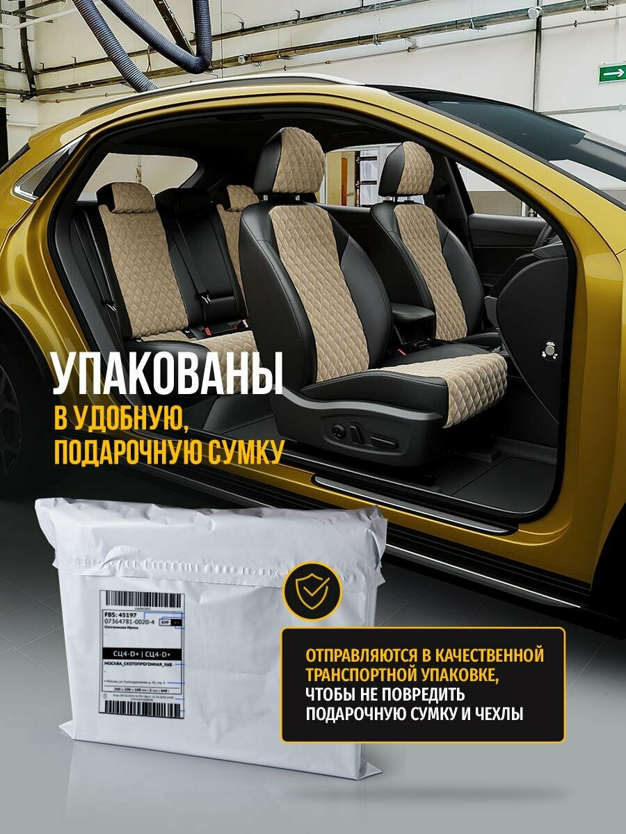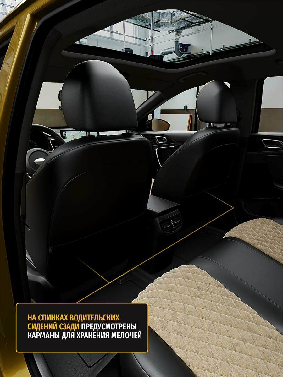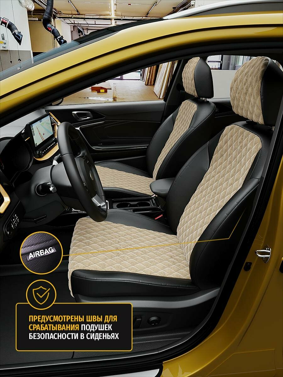 Чехлы для Skoda Rapid 2020-2021 Бежевый Черный Алькантара с ромбом Авто Лето LA306C7 интересное: