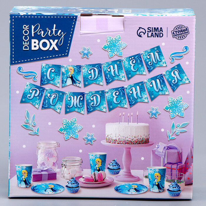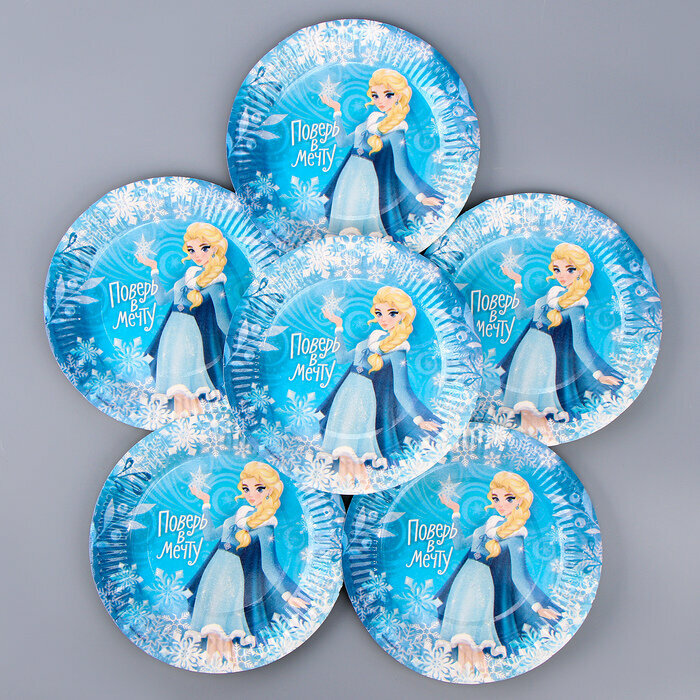 Купить Набор бумажной посуды декор «Холодная принцесса», 6 тарелок, 6 стаканов, 1 гирлянда, декор