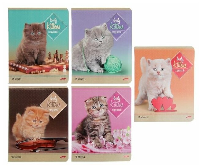 Тетрадь 48 листов линейка "Котята", микс интересное: