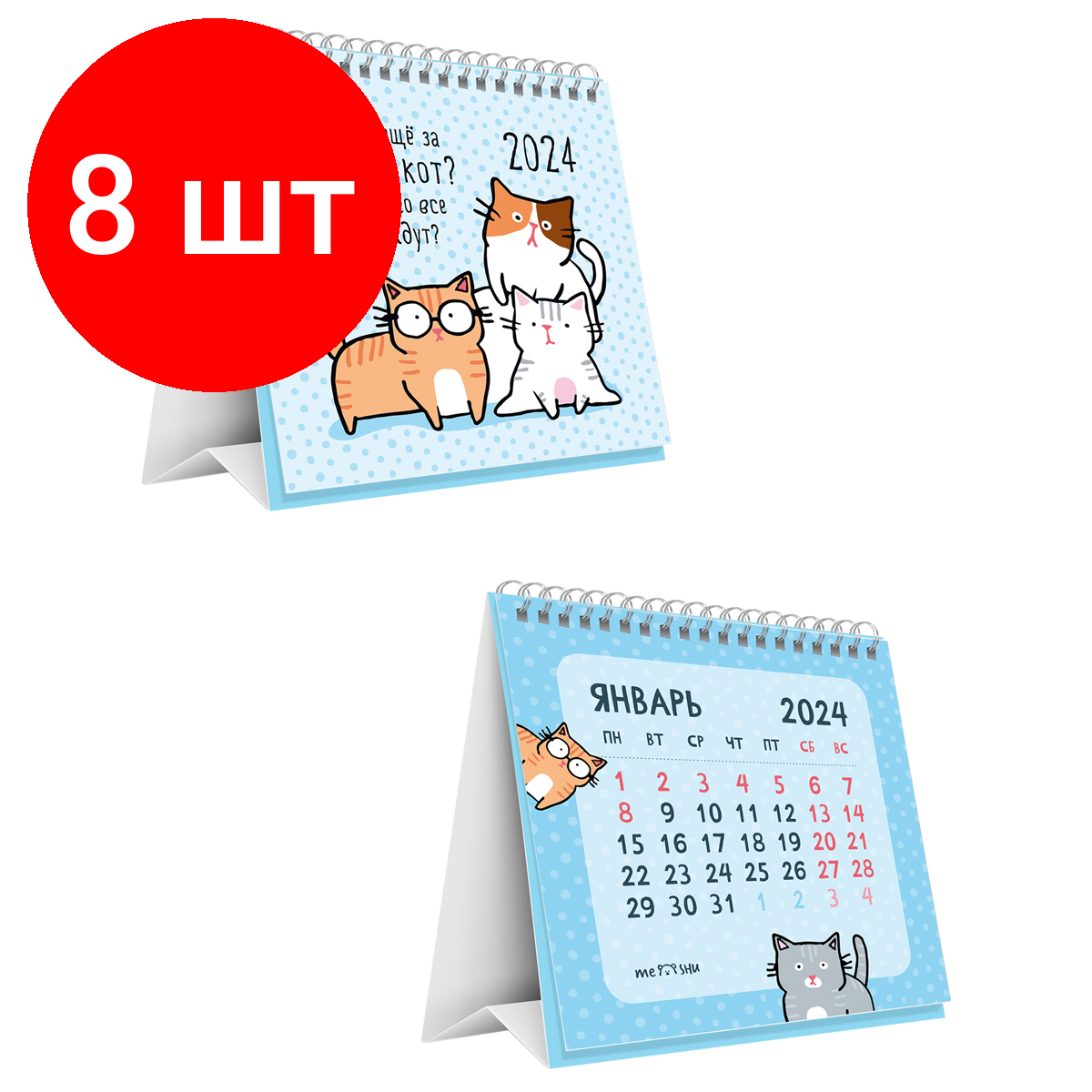 Купить Комплект 8 шт, Календарь-домик MESHU "Новый кот", на гребне, 2024г.