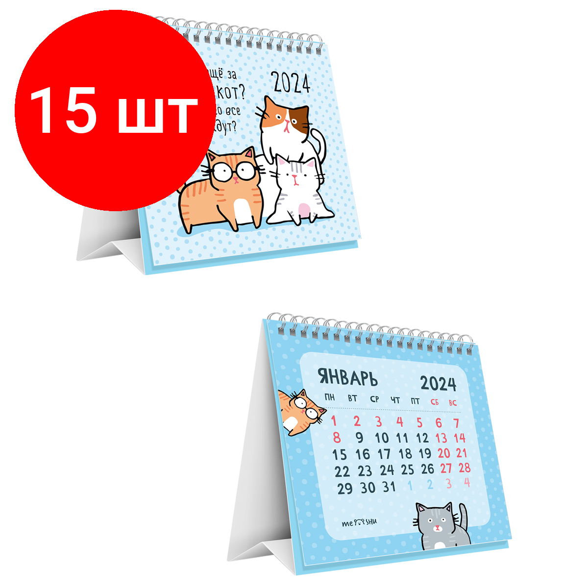 Купить Комплект 15 шт, Календарь-домик MESHU "Новый кот", на гребне, 2024г.
