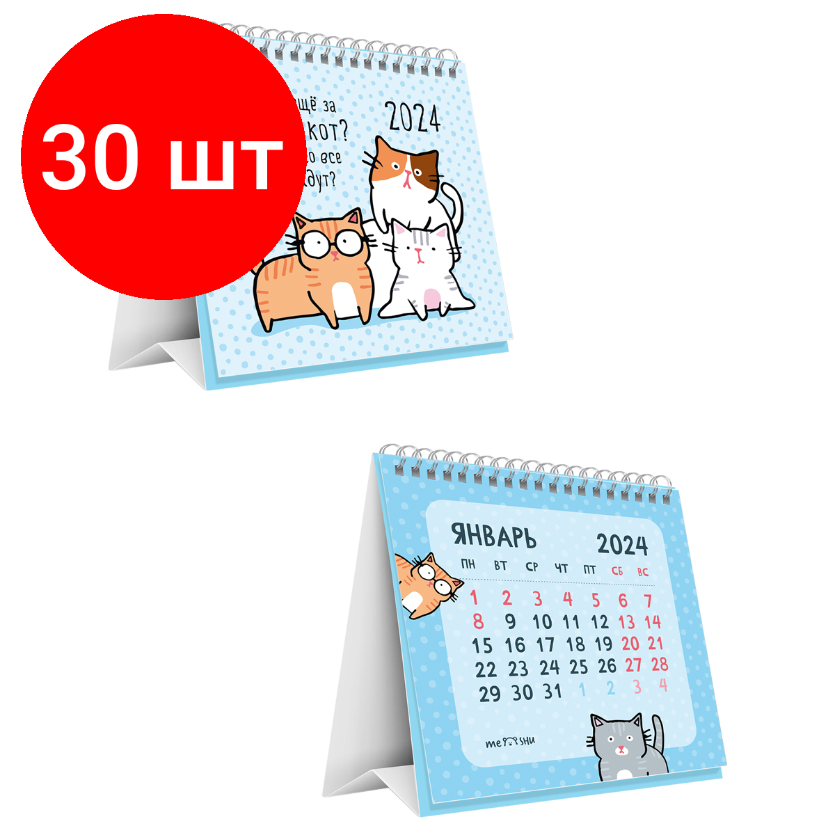 Купить Комплект 30 шт, Календарь-домик MESHU "Новый кот", на гребне, 2024г.