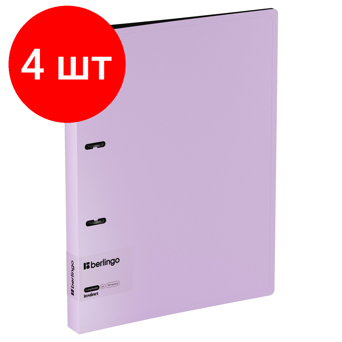 Купить Комплект 4 шт, Папка на 2 кольцах Berlingo "Instinct" А4, 35мм, 700мкм, D-кольца, с внутр. карманом, лаванда