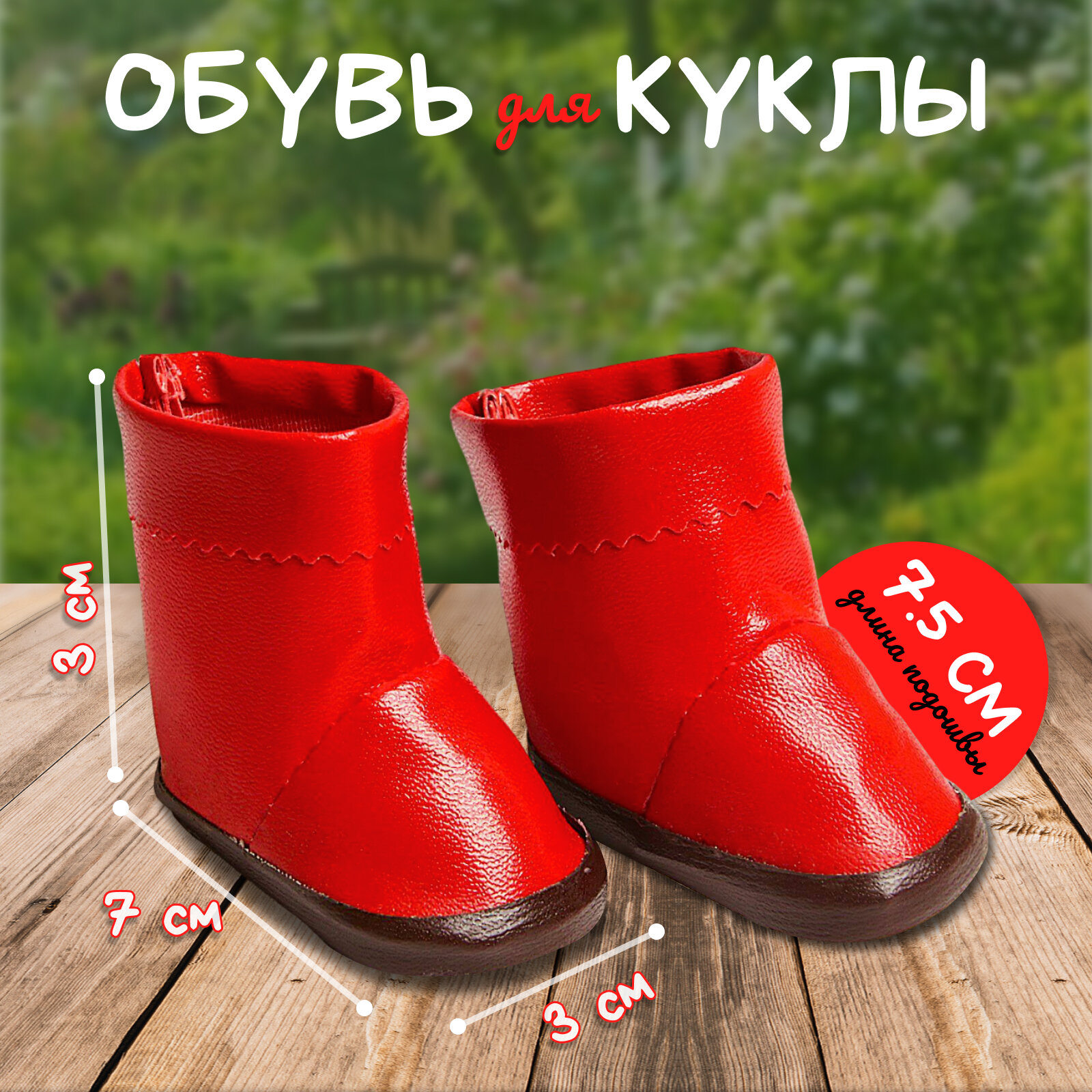Сапоги с отворотами для куклы, длина подошвы: 7,5 см, цвет красный интересное: