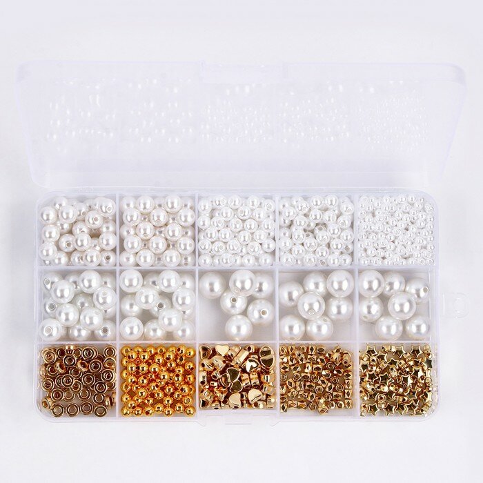 Купить Набор для создания украшений «Жемчужные бусины», размер бусин: от 2 до 12 мм, "Hidde", цвет золотистый