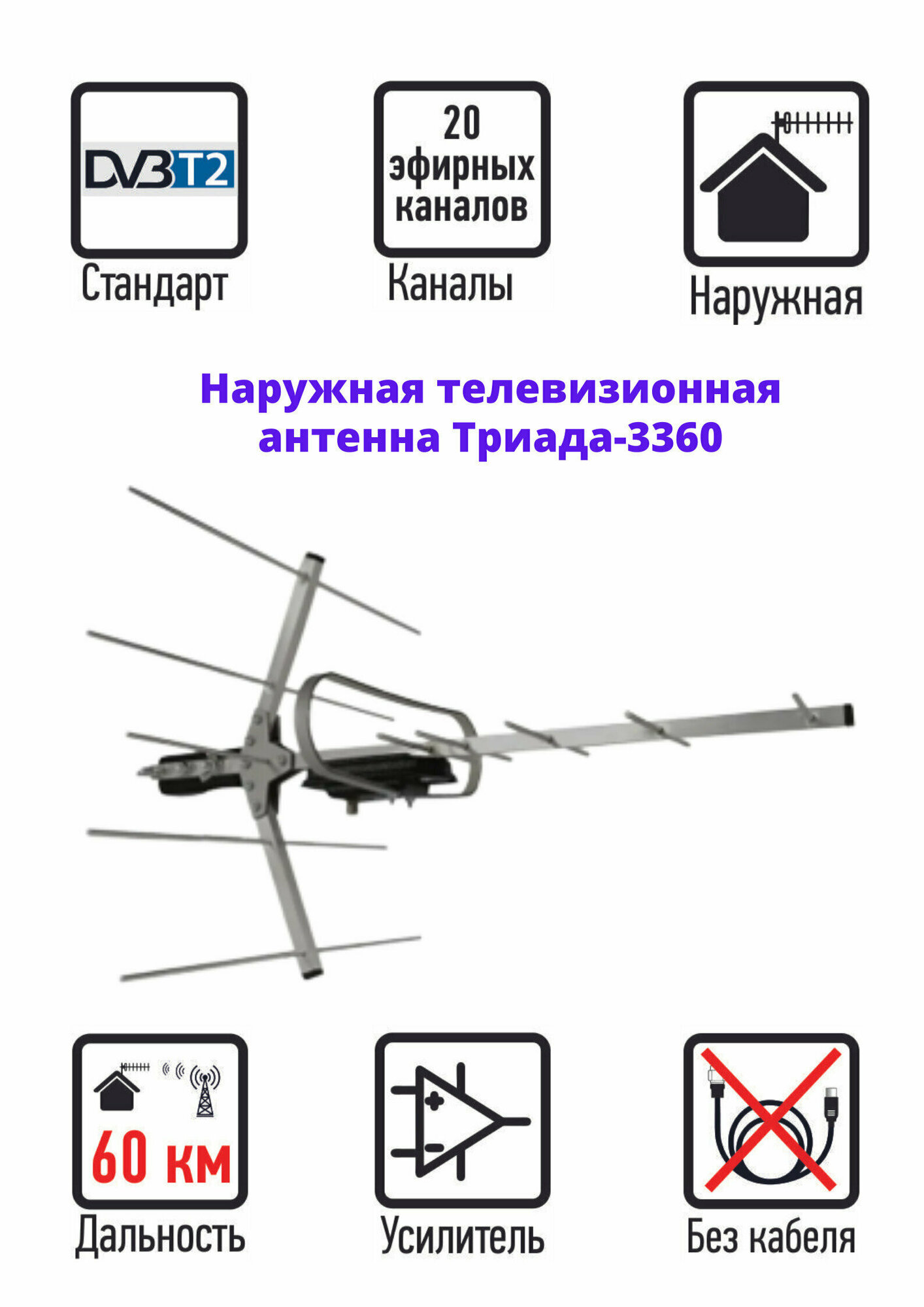 Наружная телевизионная антенна Триада ANT 3360 ДМВ до 60 км интересное: