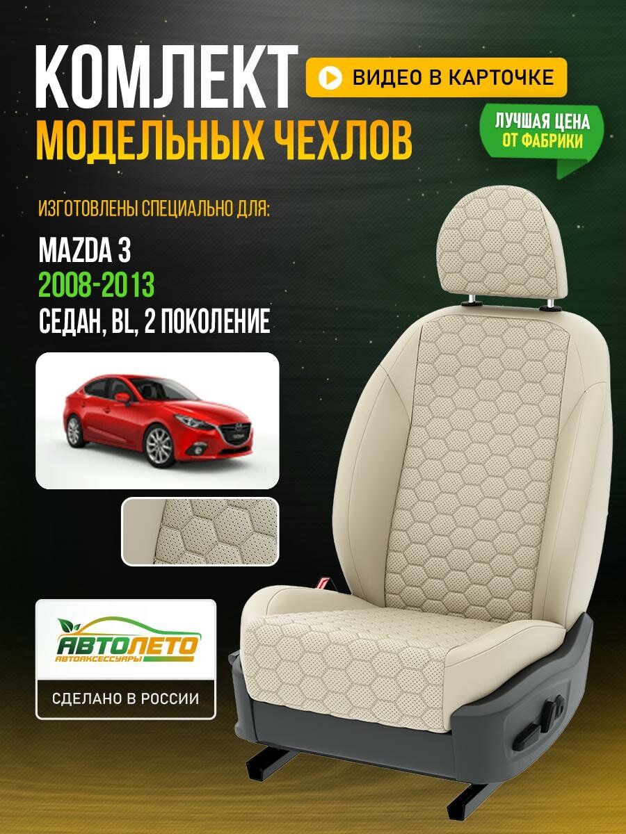 Купить Чехлы для Mazda 3 2 BL 2003-2018 Кремовый Кремовый Экокожа соты Авто Лето LA587C123