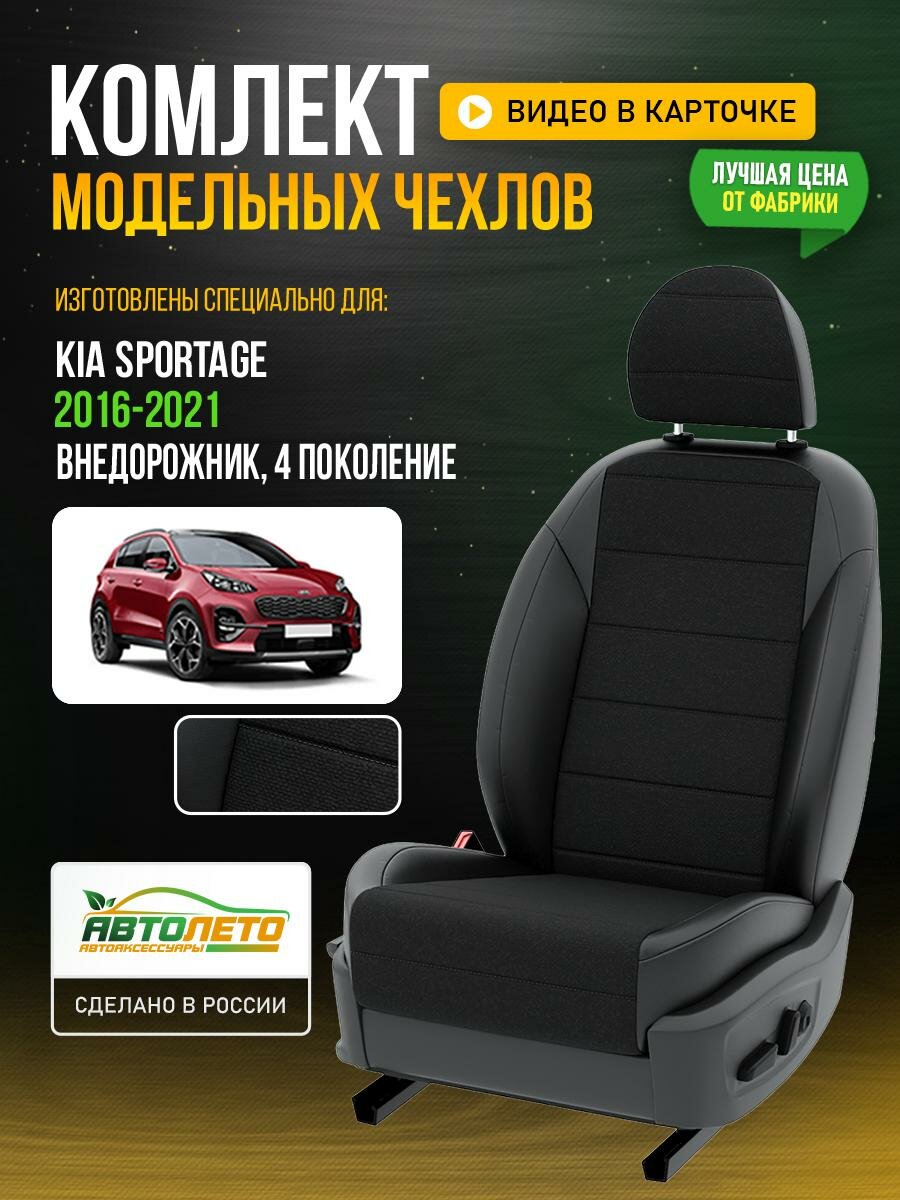 Чехлы для KIA Sportage 4 2016-2021 Черный Черный Креп Авто Лето LA623C53 интересное: