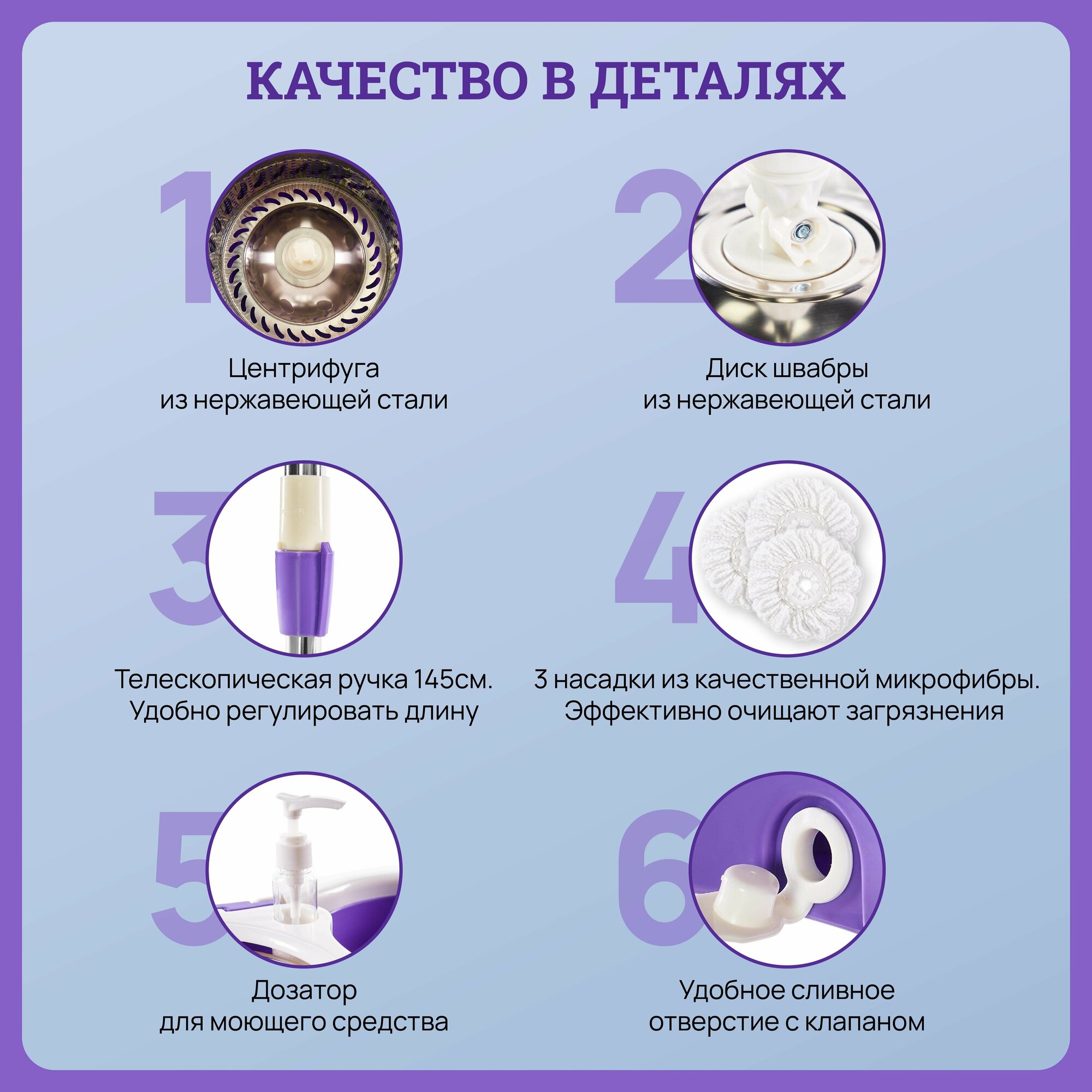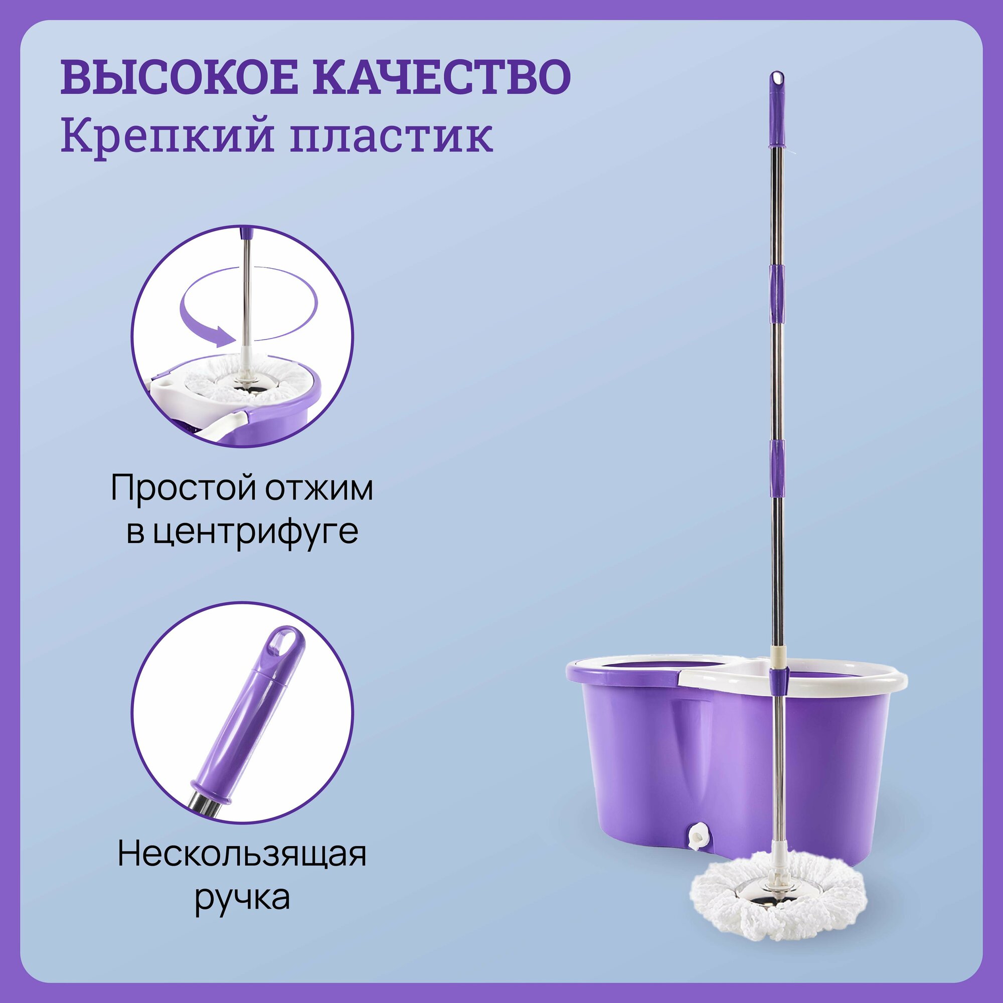 Швабра с отжимом и ведром, центрифугой, комплект для влажной уборки дома, для мытья полов, 3 насадки в подарок, ведро 10 л, для бесконтактного мытья интересное: