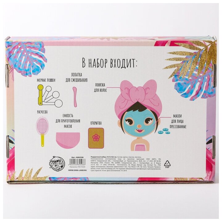 Набор «С 8 марта»: расческа, повязка на голову, мерные ложки 3 шт, чаша и лопатка для маски, спрессованные маски интересное:
