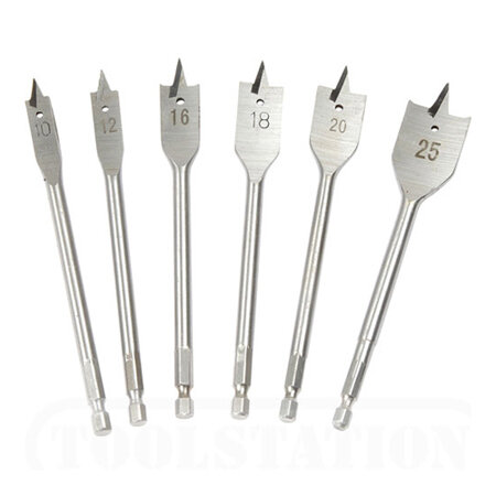 Набор перьевых сверел по дереву 6 штук (10; 12; 16; 18; 20; 25 мм) интересное: