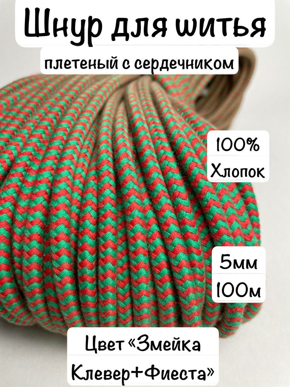 Купить Шнур для шитья плетеный с сердечником 5мм 100м Змейка Фиеста+Клевер