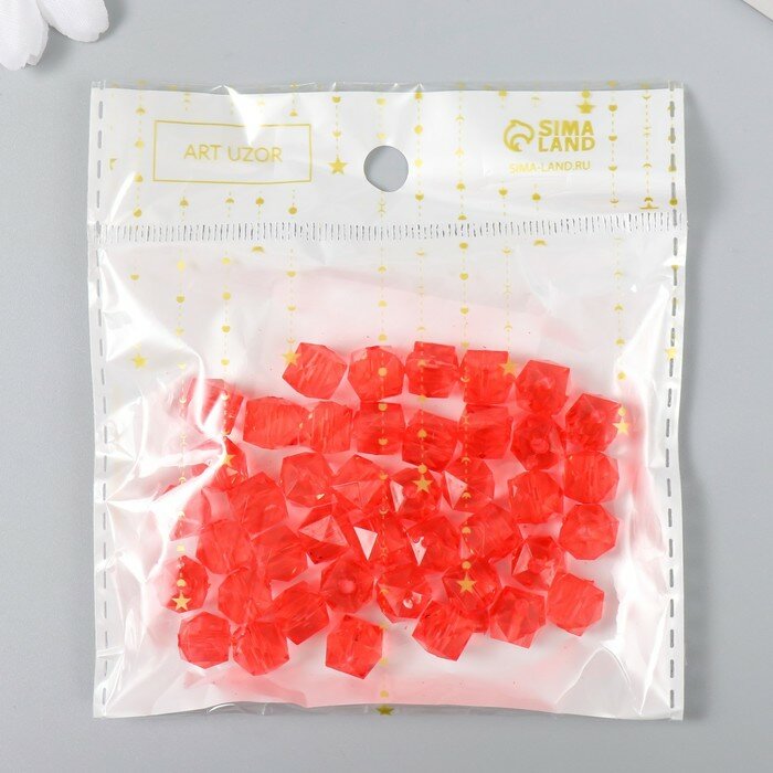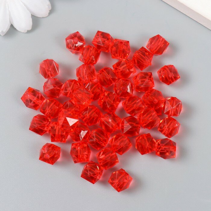 Бусины пластик "Кристалл многогранник. Красный" прозрачный набор 20 гр 1х1х1 см интересное: