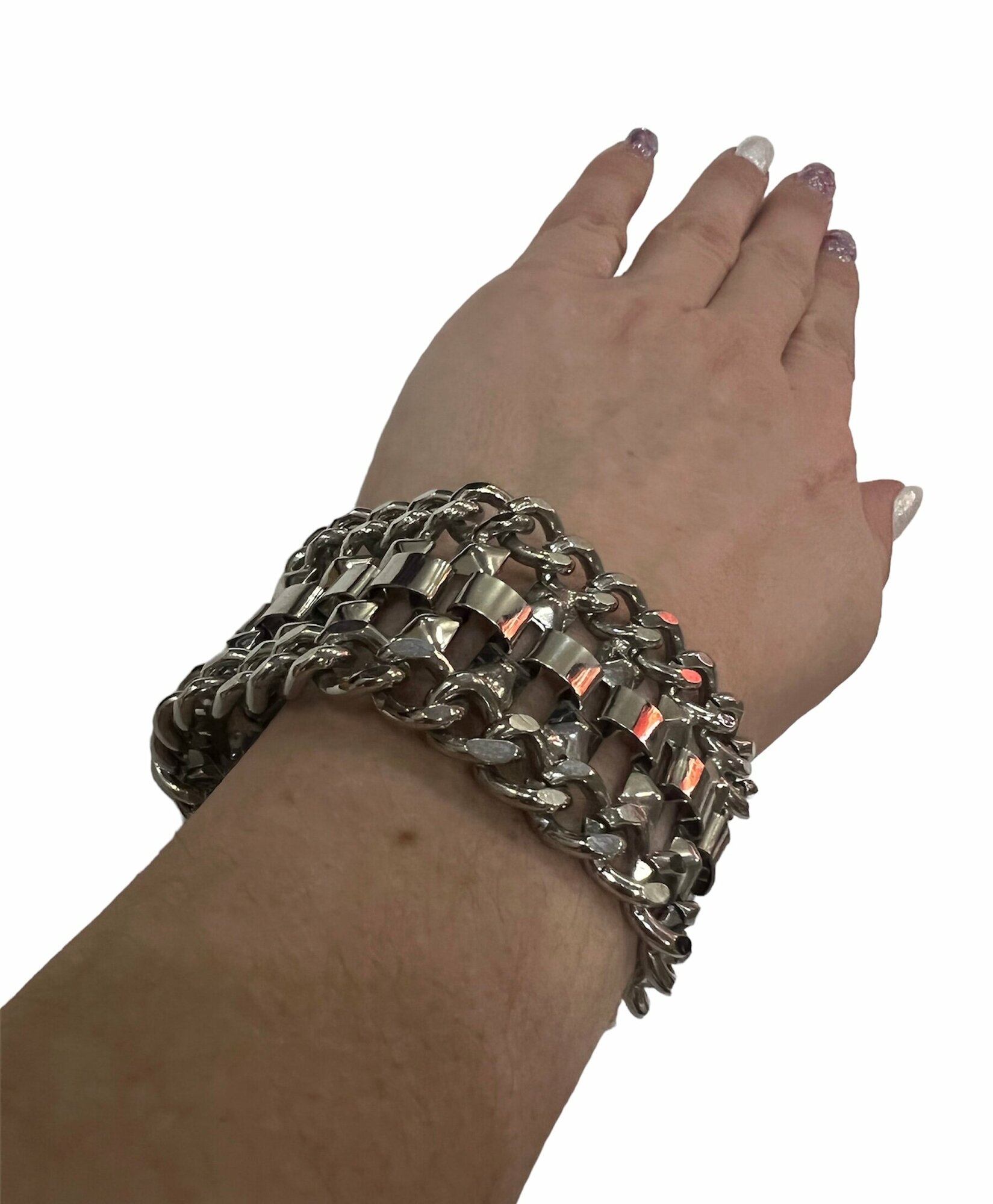 Ниже Вы можете прочитать отзывы на Универсальный браслет из металла, длина 19 см, ширина 5 см, цвет серебряный, ознакомится с подробными характеристиками, посмотреть интересные обзоры и фотографии на Универсальный браслет из металла, длина 19 см, ширина 5 см, цвет серебряный.