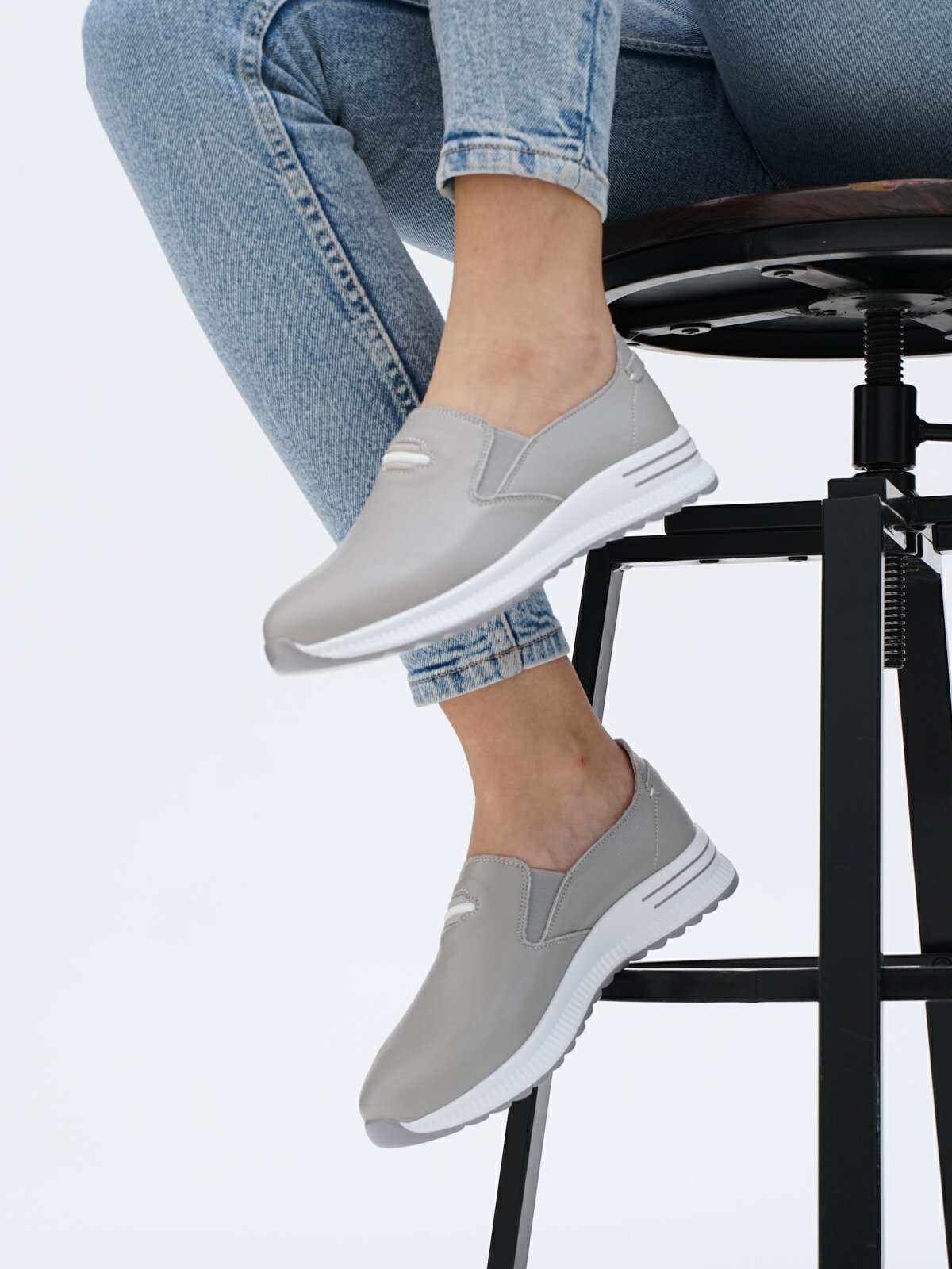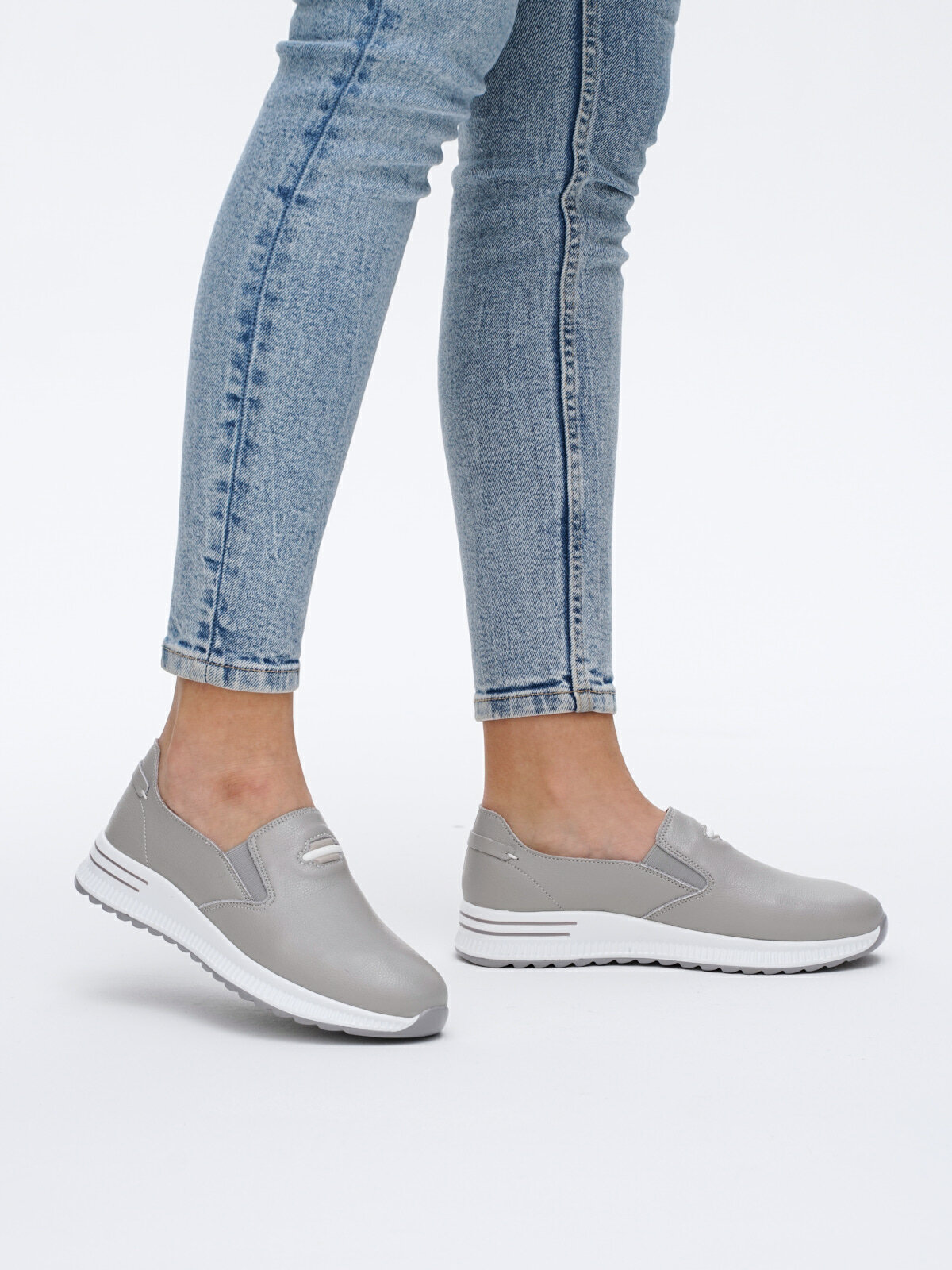 Купить Слипоны натуральная кожа полуботинки на платформе туфли весна женские без шнурков в спортивном стиле Brado A5364-2-gray