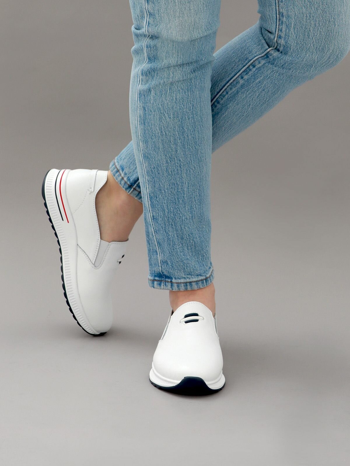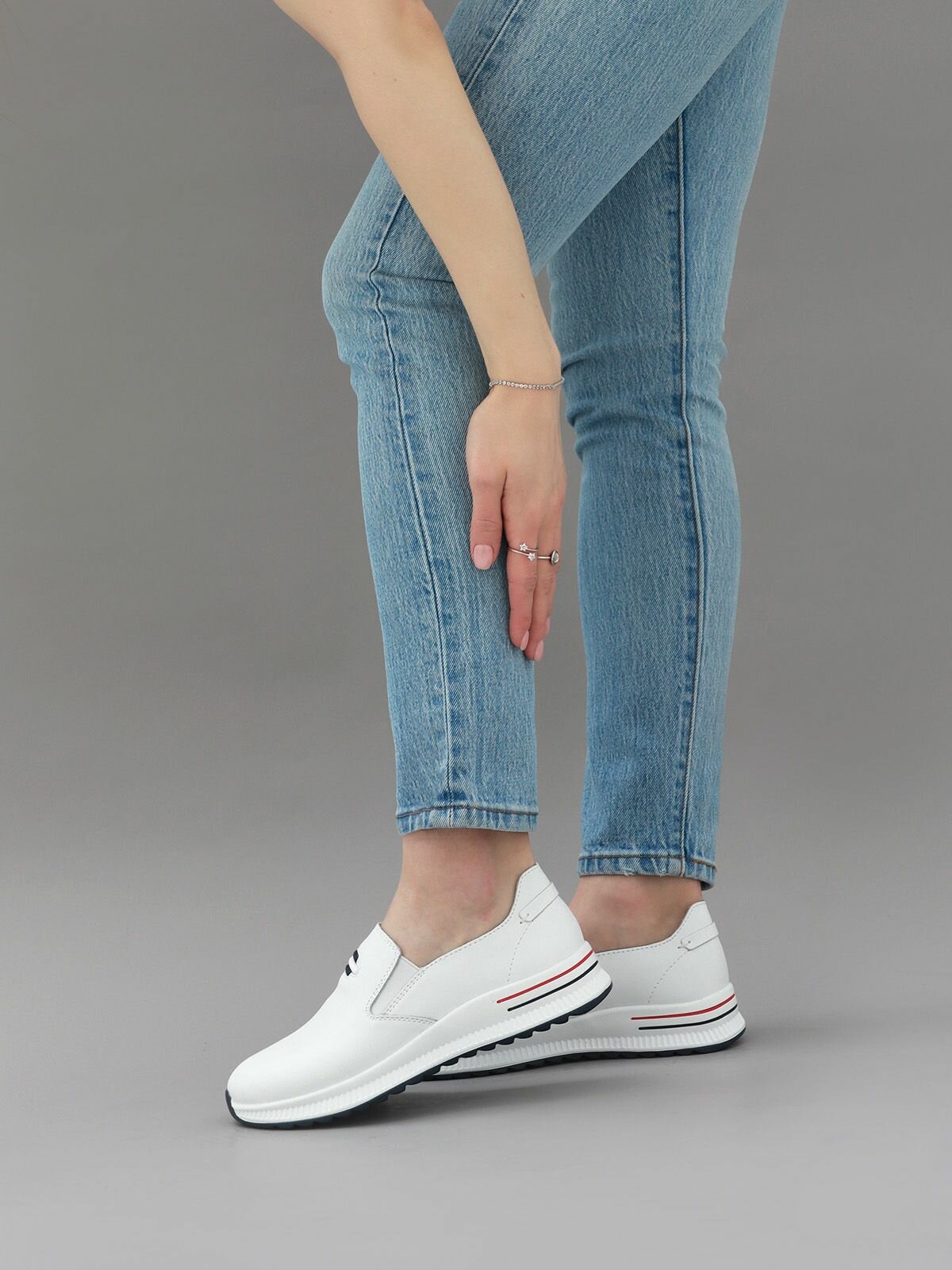 Купить Слипоны натуральная кожа полуботинки на платформе туфли весна женские без шнурков в спортивном стиле Brado A5364-1-white