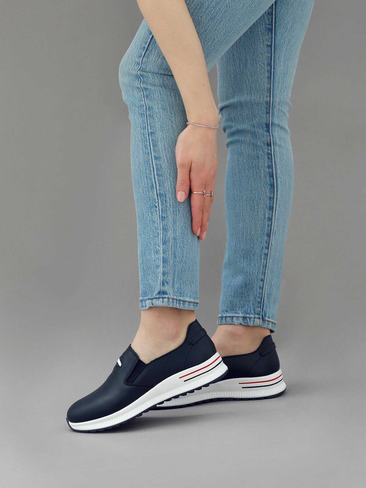 Купить Слипоны натуральная кожа полуботинки на платформе туфли весна женские без шнурков в спортивном стиле Brado A5364-4-blue