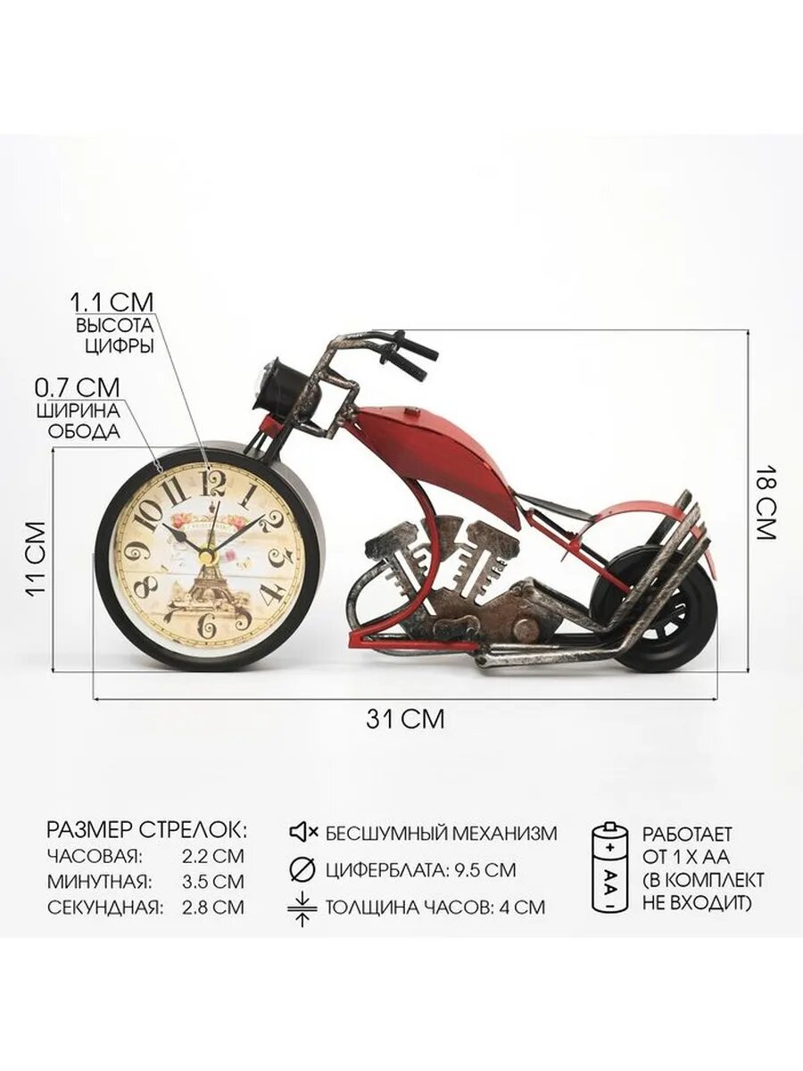 Часы настольные "Ретро мотоцикл", плавный ход, d=9.5 см, 18 х 29.5 см 3598528