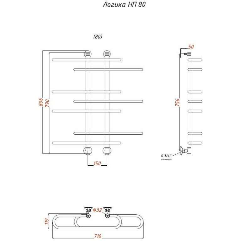 Полотенцесушитель Логика НП 80*60 (ЛЦ9)