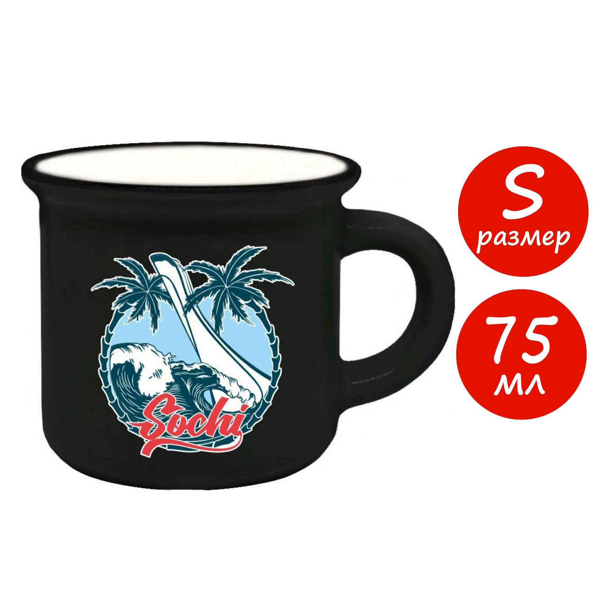 Кружка мини сувенирная "Сочи. Пальмы и олимпийский факел" черная, 75мл. интересное: