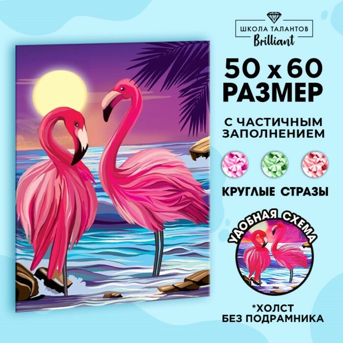 Купить Алмазная мозаика с частичным заполнением «Фламинго на закате» 50x60 см, холст, ёмкость, "Школа талантов"
