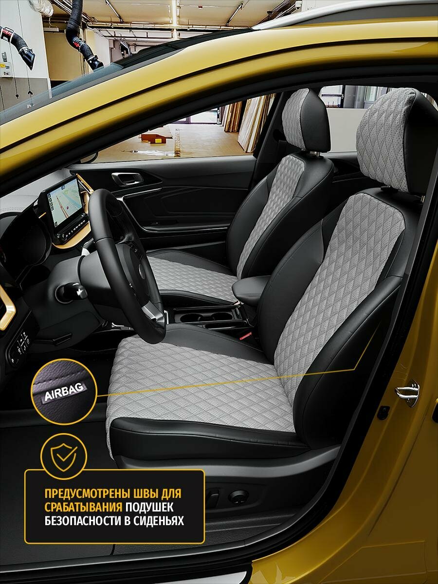 Чехлы для Peugeot 3008 2 2016-2021 Светло-Серый Черный Экокожа с ромбом и перфорацией Авто Лето LA420C104 интересное: