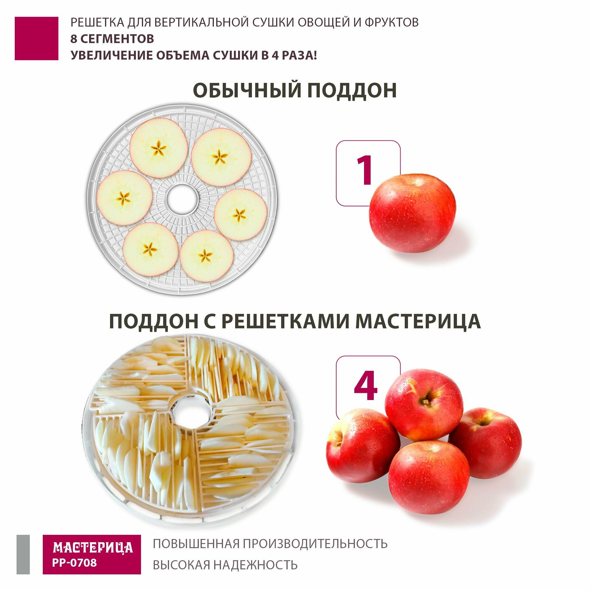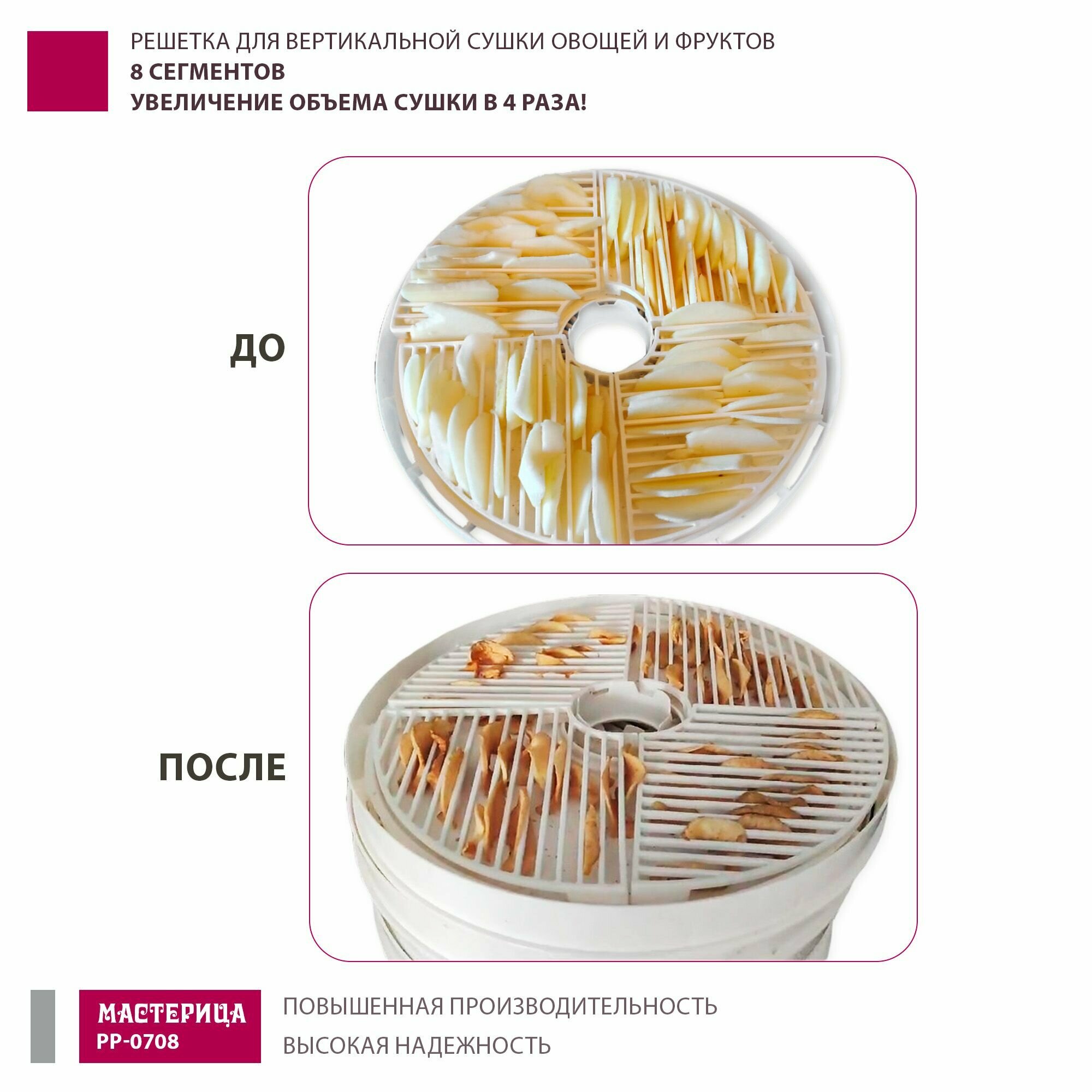 Поддон для вертикальной сушилки овощей и фруктов Мастерица PP-0708, комплект 8 сегментов/решётка интересное: